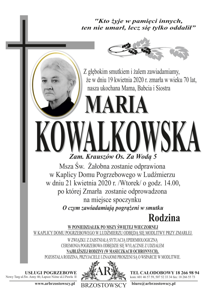 Maria Kowalkowska - Nekrologi - podhale24.pl