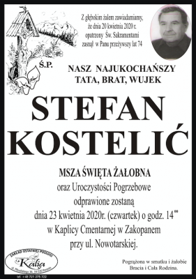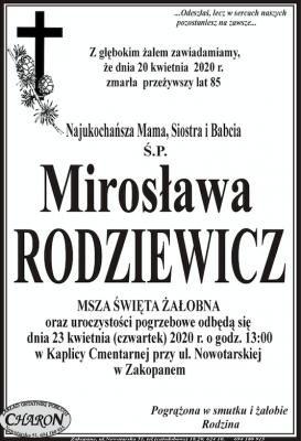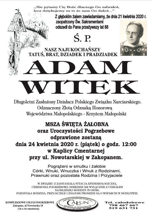Podhale24.pl zastrzega sobie prawo do nie publikowania wspomnień, w szczególności tych nie związanych z profilem działu nekrologi, zawierających wulgaryzmy, wzywających do zachowań niezgodnych z prawem, obrażających osoby publiczne i prywatne, obrażających inne narodowości, rasy, religie itd, oraz te, bez możliwości telefonicznej lub mailowej weryfikacji ich autora.