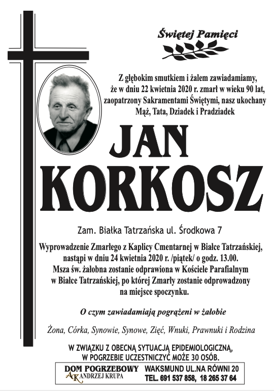 Podhale24.pl zastrzega sobie prawo do nie publikowania wspomnień, w szczególności tych nie związanych z profilem działu nekrologi, zawierających wulgaryzmy, wzywających do zachowań niezgodnych z prawem, obrażających osoby publiczne i prywatne, obrażających inne narodowości, rasy, religie itd, oraz te, bez możliwości telefonicznej lub mailowej weryfikacji ich autora.
