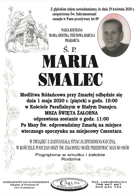 Maria Smalec - Nekrologi - podhale24.pl