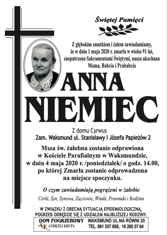 Podhale24.pl zastrzega sobie prawo do nie publikowania wspomnień, w szczególności tych nie związanych z profilem działu nekrologi, zawierających wulgaryzmy, wzywających do zachowań niezgodnych z prawem, obrażających osoby publiczne i prywatne, obrażających inne narodowości, rasy, religie itd, oraz te, bez możliwości telefonicznej lub mailowej weryfikacji ich autora.
