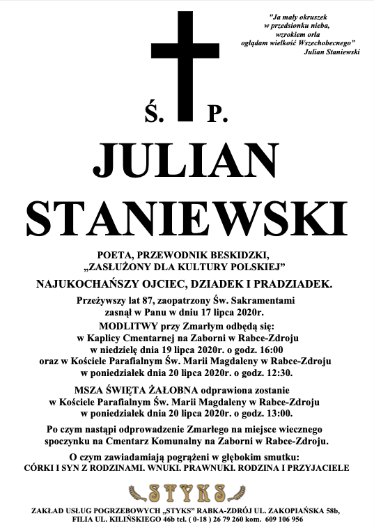 Julian Staniewski - Nekrologi - podhale24.pl