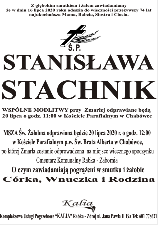 Stanisława Stachnik - Nekrologi - podhale24.pl