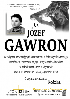 Podhale24.pl zastrzega sobie prawo do nie publikowania wspomnień, w szczególności tych nie związanych z profilem działu nekrologi, zawierających wulgaryzmy, wzywających do zachowań niezgodnych z prawem, obrażających osoby publiczne i prywatne, obrażających inne narodowości, rasy, religie itd, oraz te, bez możliwości telefonicznej lub mailowej weryfikacji ich autora.