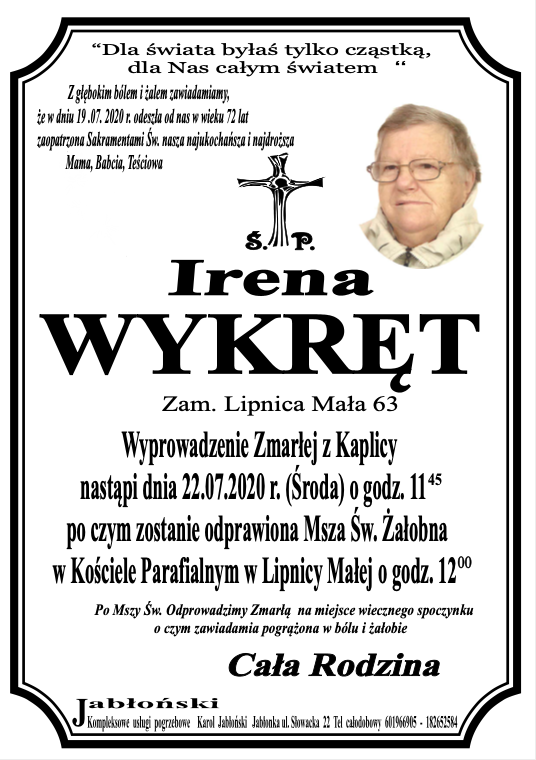 Podhale24.pl zastrzega sobie prawo do nie publikowania wspomnień, w szczególności tych nie związanych z profilem działu nekrologi, zawierających wulgaryzmy, wzywających do zachowań niezgodnych z prawem, obrażających osoby publiczne i prywatne, obrażających inne narodowości, rasy, religie itd, oraz te, bez możliwości telefonicznej lub mailowej weryfikacji ich autora.