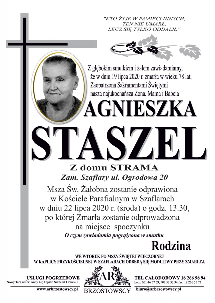 Agnieszka Staszel - Nekrologi - podhale24.pl