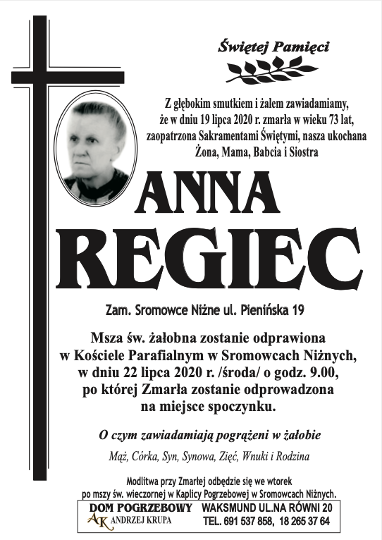 Anna Regiec - Nekrologi - podhale24.pl