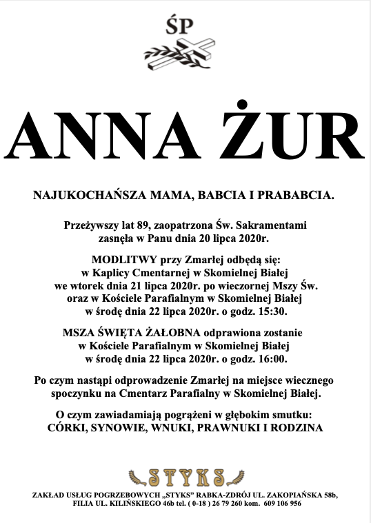 Anna Żur - Nekrologi - podhale24.pl
