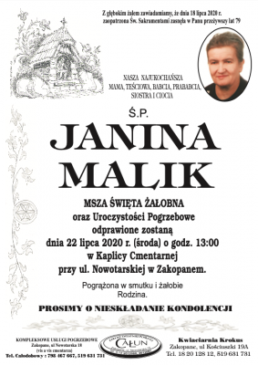 Podhale24.pl zastrzega sobie prawo do nie publikowania wspomnień, w szczególności tych nie związanych z profilem działu nekrologi, zawierających wulgaryzmy, wzywających do zachowań niezgodnych z prawem, obrażających osoby publiczne i prywatne, obrażających inne narodowości, rasy, religie itd, oraz te, bez możliwości telefonicznej lub mailowej weryfikacji ich autora.