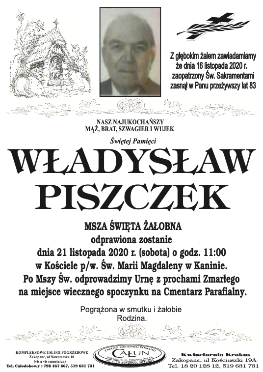 Władysław Piszczek - Nekrologi - podhale24.pl