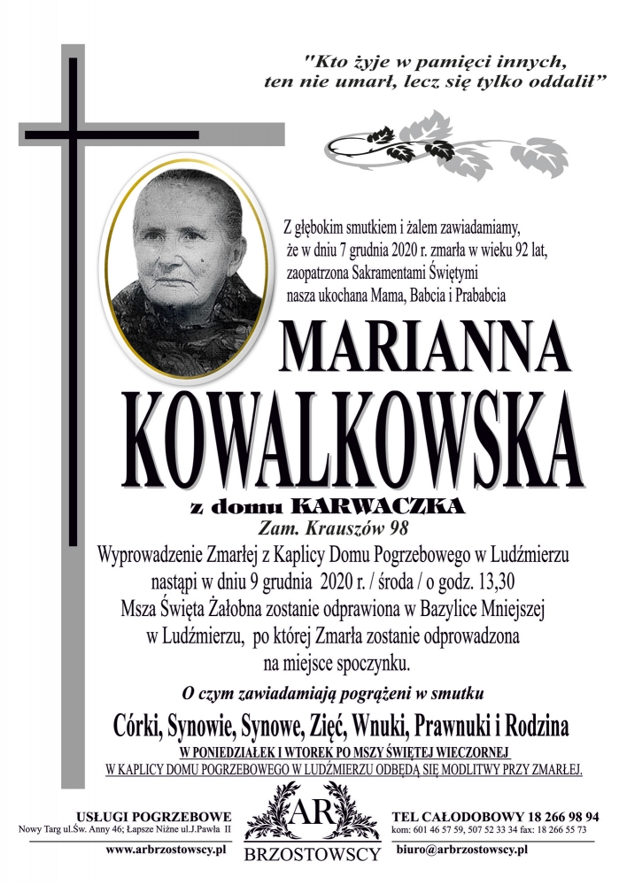 Marianna Kowalkowska - Nekrologi - podhale24.pl