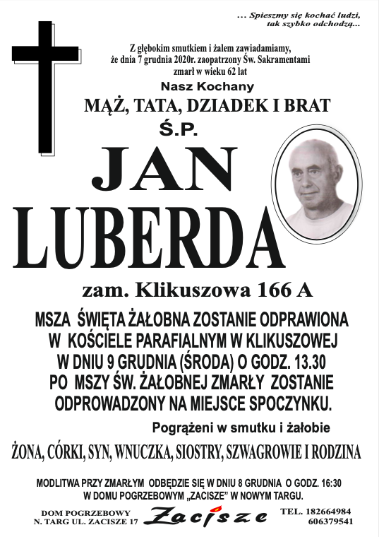 Podhale24.pl zastrzega sobie prawo do nie publikowania wspomnień, w szczególności tych nie związanych z profilem działu nekrologi, zawierających wulgaryzmy, wzywających do zachowań niezgodnych z prawem, obrażających osoby publiczne i prywatne, obrażających inne narodowości, rasy, religie itd, oraz te, bez możliwości telefonicznej lub mailowej weryfikacji ich autora.