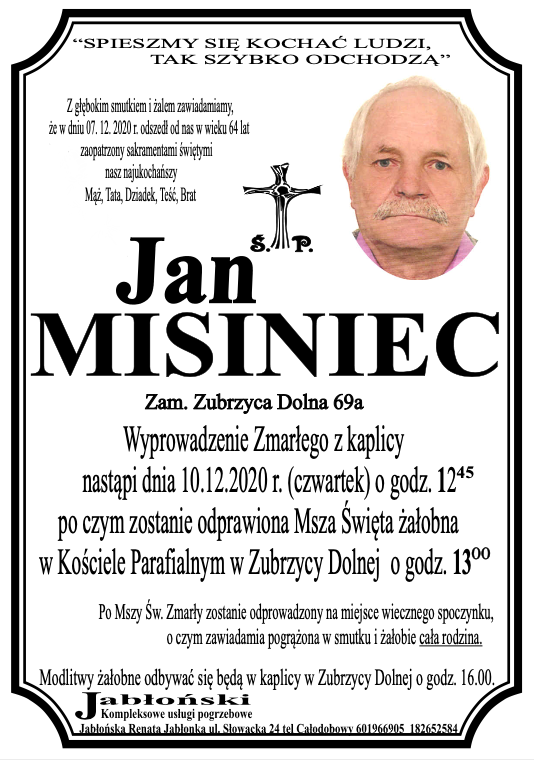 Podhale24.pl zastrzega sobie prawo do nie publikowania wspomnień, w szczególności tych nie związanych z profilem działu nekrologi, zawierających wulgaryzmy, wzywających do zachowań niezgodnych z prawem, obrażających osoby publiczne i prywatne, obrażających inne narodowości, rasy, religie itd, oraz te, bez możliwości telefonicznej lub mailowej weryfikacji ich autora.