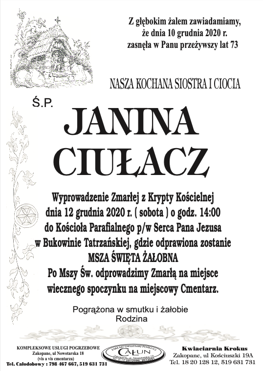 Janina Ciułacz - Nekrologi - podhale24.pl