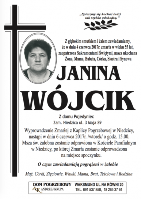 Podhale24.pl zastrzega sobie prawo do nie publikowania wspomnień, w szczególności tych nie związanych z profilem działu nekrologi, zawierających wulgaryzmy, wzywających do zachowań niezgodnych z prawem, obrażających osoby publiczne i prywatne, obrażających inne narodowości, rasy, religie itd, oraz te, bez możliwości telefonicznej lub mailowej weryfikacji ich autora.