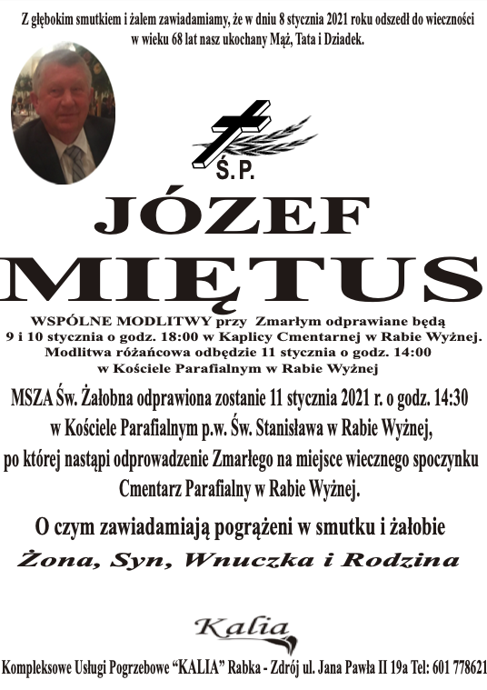 Podhale24.pl zastrzega sobie prawo do nie publikowania wspomnień, w szczególności tych nie związanych z profilem działu nekrologi, zawierających wulgaryzmy, wzywających do zachowań niezgodnych z prawem, obrażających osoby publiczne i prywatne, obrażających inne narodowości, rasy, religie itd, oraz te, bez możliwości telefonicznej lub mailowej weryfikacji ich autora.