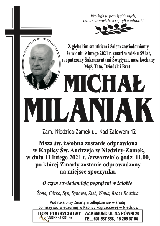 Podhale24.pl zastrzega sobie prawo do nie publikowania wspomnień, w szczególności tych nie związanych z profilem działu nekrologi, zawierających wulgaryzmy, wzywających do zachowań niezgodnych z prawem, obrażających osoby publiczne i prywatne, obrażających inne narodowości, rasy, religie itd, oraz te, bez możliwości telefonicznej lub mailowej weryfikacji ich autora.