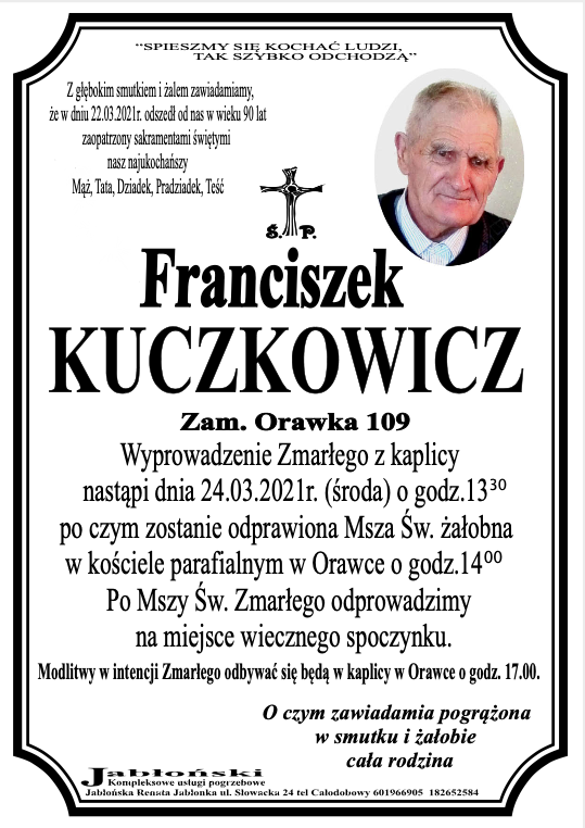 Franciszek Kuczkowicz - Nekrologi - podhale24.pl