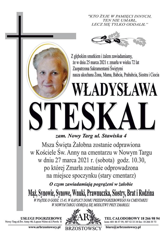 Podhale24.pl zastrzega sobie prawo do nie publikowania wspomnień, w szczególności tych nie związanych z profilem działu nekrologi, zawierających wulgaryzmy, wzywających do zachowań niezgodnych z prawem, obrażających osoby publiczne i prywatne, obrażających inne narodowości, rasy, religie itd, oraz te, bez możliwości telefonicznej lub mailowej weryfikacji ich autora.