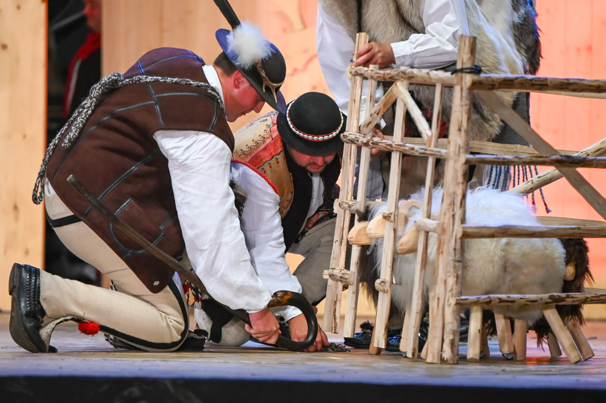 Parafialny Regionalny Zespół Giewont z Olczy przedstawił jak wyglądały zwyczaje pasterskie. Program „Na holi” rozpoczął się od przekazania owiec juhasom i wyjścia na wypas. Juhasi przygotowali zagrody dla owiec, a później zatańczyli charakterystyczny taniec juhaski, który przerwało pojawienie się niedźwiedzia, dodajmy mającego długą historię sceniczną, gdyż „grał” on już w operze góralskiej „Jadwisia spod regli”.