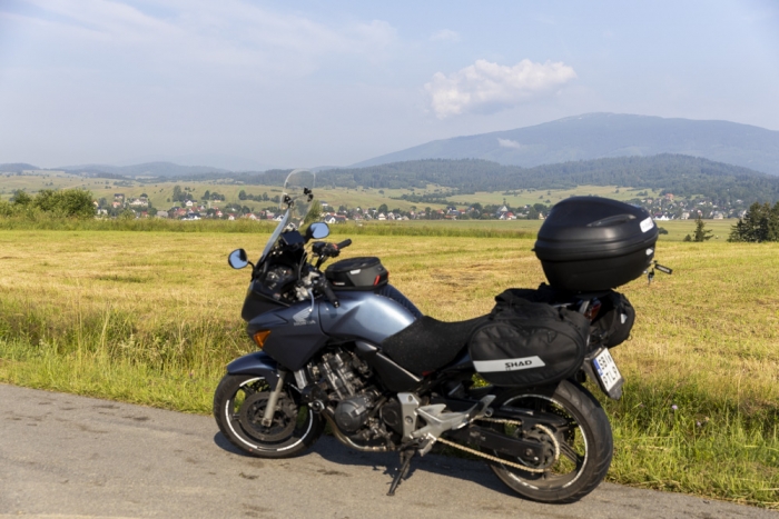 Wczesnym rankiem spakowałem niezbędne rzeczy do sakw mojej Hondy i wyruszyłem z Zubrzycy Górnej. Szybkie pożegnanie jeszcze z Babią Góra.