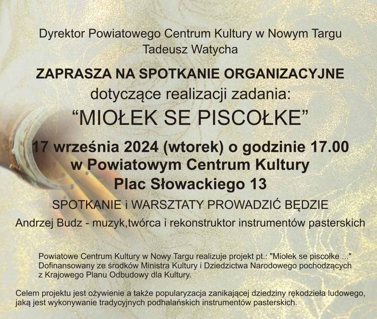 Zajęcia poprowadzi znany Mistrz Tradycji Andrzej Budz. Zapraszam na spotkanie organizacyjne, które odbędzie się 17 września godz. 17.00 - w "Sokole", w siedzibie Centrum, pl. Juliusza Słowackiego 13 .