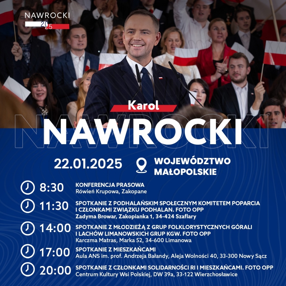 Przypomnijmy, iż na Podhalu gościł już w ramach kampanii wyborczej Rafał Trzaskowski i Adrian Zandberg. W sobotę przyjedzie natomiast Sławomir Mentzen.