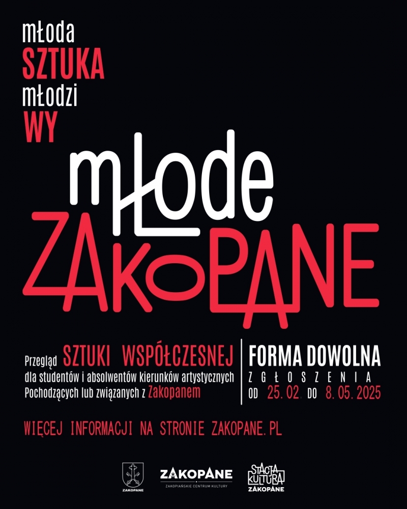 Zgłoszenia (skan wypełnionej i podpisanej karty zgłoszeniowej oraz zdjęcie pracy) można przesyłać do 8 maja 2025 r. na adres mailowy mlodezakopane@zck.net.pl. Więcej informacji, regulamin oraz formularz zgłoszeniowy dostępne są na stronie Zakopane.pl.