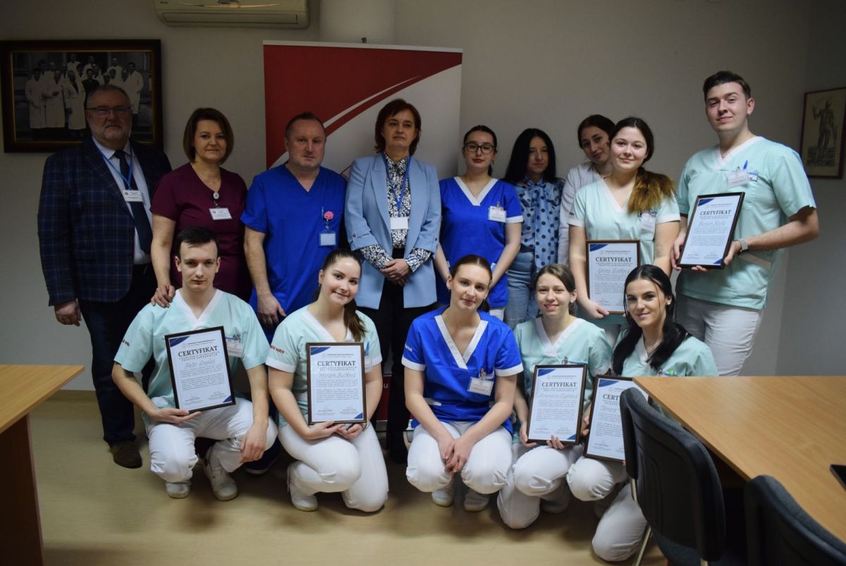 Pierwsza grupa dziewięciu przyszłych pielęgniarek, pielęgniarzy i masażystek rozpoczęła tygodniowe praktyki 17 marca, zdobywając doświadczenie w Oddziale Chirurgii Urazowo-Ortopedycznej z Pododdziałem Chirurgii Artroskopowej, Oddziale Neurologicznym z Pododdziałem Leczenia Udarów oraz Zakładzie Fizjoterapii.