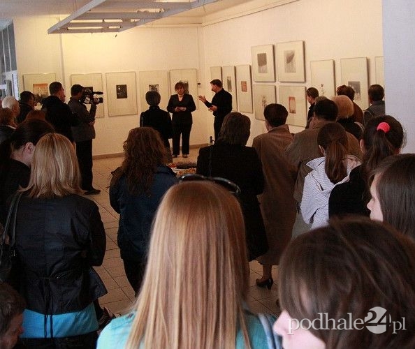 Wernisaż miał odbyć się tydzień wcześniej, ale z uwagi na żałobę narodową spotkanie przesunięto na ten piątek. Artystki, które zapowiedziały swój przyjazd do Nowego Targu nie mogły dostosować się do nowego terminu, ale reprezentował je w "Jatkach" zakopiański grafik Jerzy Jędrysiak, który specjalizuje się w linorycie.