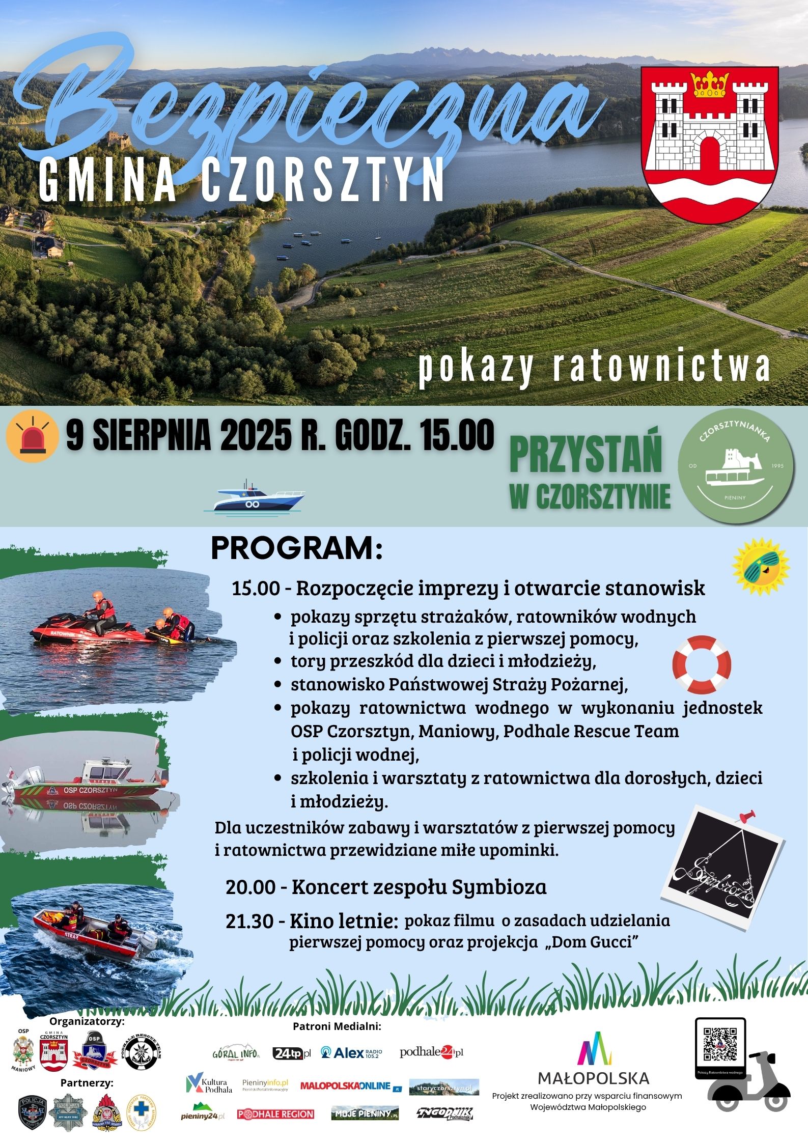 W programie m.in.: pokazy sprzętu ratowniczego, tor przeszkód dla dzieci, warsztaty z udzielania pierwszej pomocy, widowiskowe pokazy ratownictwa wodnego z udziałem jednostek OSP Czorsztyn, OSP Maniowy, Podhale Rescue Team oraz policji wodnej.