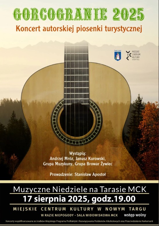 Koncert zapowiada się jako spotkanie z żywą historią piosenki turystycznej, a jednocześnie okazja, by posłuchać premierowych utworów i interpretacji autorów, którzy od dekad towarzyszą turystom na szlakach. Początek o godz. 19. W razie niepogody impreza zamiast na tarasie, odbędzie się w sali widowiskowej.