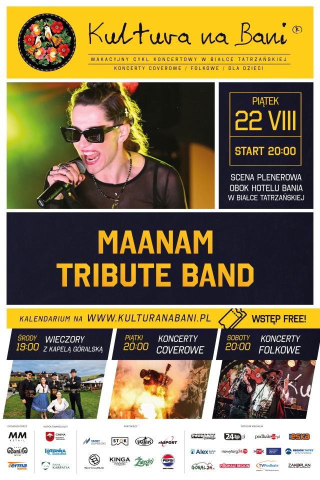 W piątek na scenie Kultury na Bani zagra zespół Maanam Tribute Band, który zaprezentuje najpopularniejsze kawałki legendy polskiej estrady. Start o godzinie 20:00.
