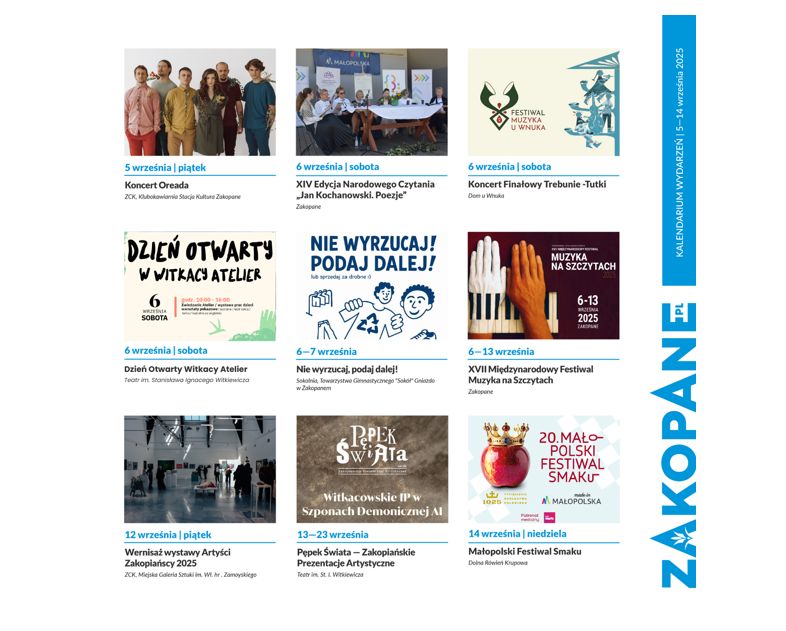 Zakopiańskie Prezentacje Artystyczne - Pępek świata. To coroczne spotkanie różnorodnych form artystycznych - teatru, muzyki, literatury, performance i sztuki. Temat tegorocznej, XIV edycji, to "Witkacowskie IP w Szponach Demonicznej AI".