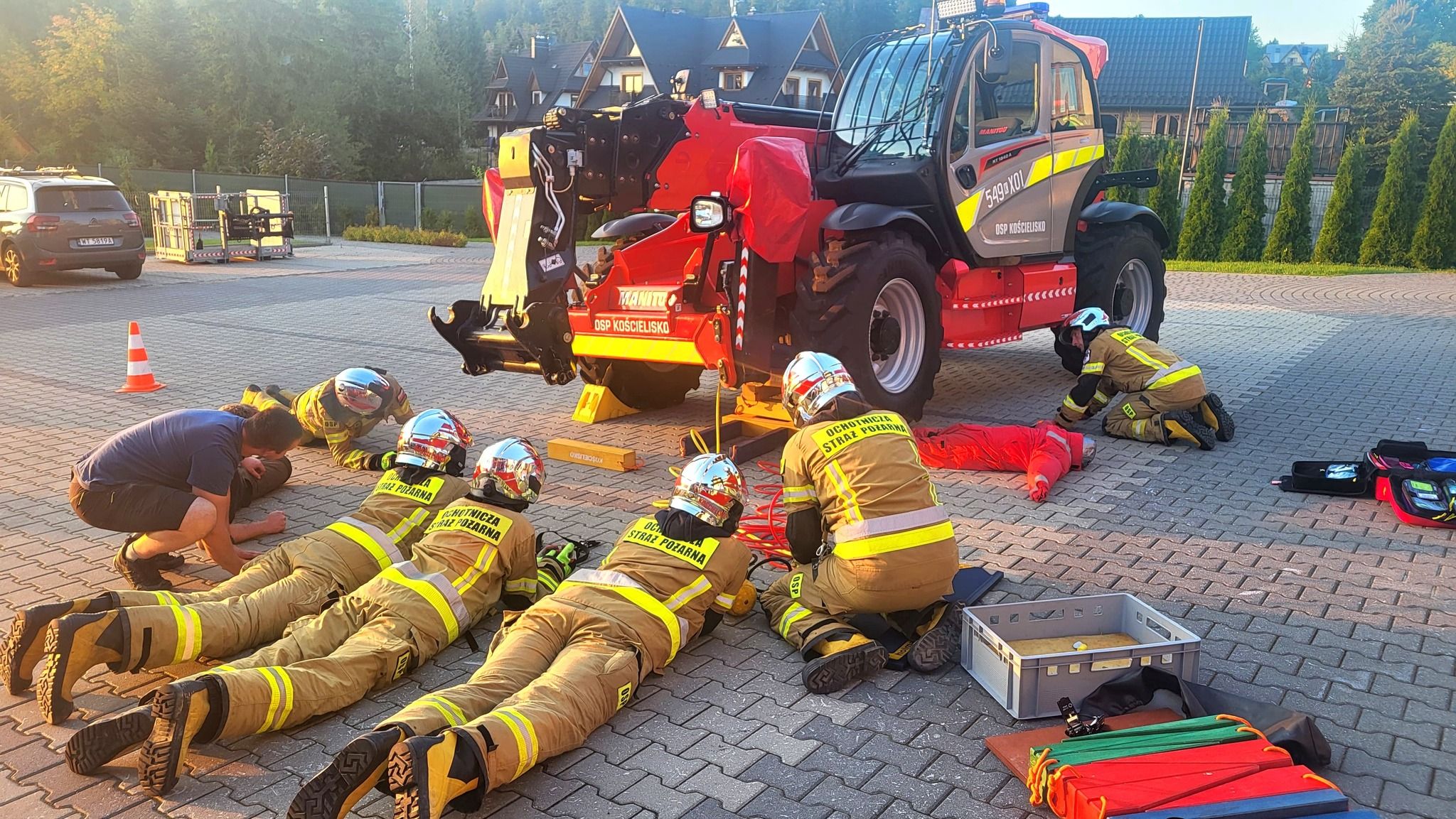 KOŚCIELISKO. "Jakiś czas temu zrobiliśmy sobie przypomnienie z podnoszenia pojazdów na bazie quada. Ostatnio wróciliśmy do tej tematyki, tym razem z nieco większym ciężarem w postaci ładowarki teleskopowej" - opisują niedawne szkolenie strażacy z OSP Kościelisko.