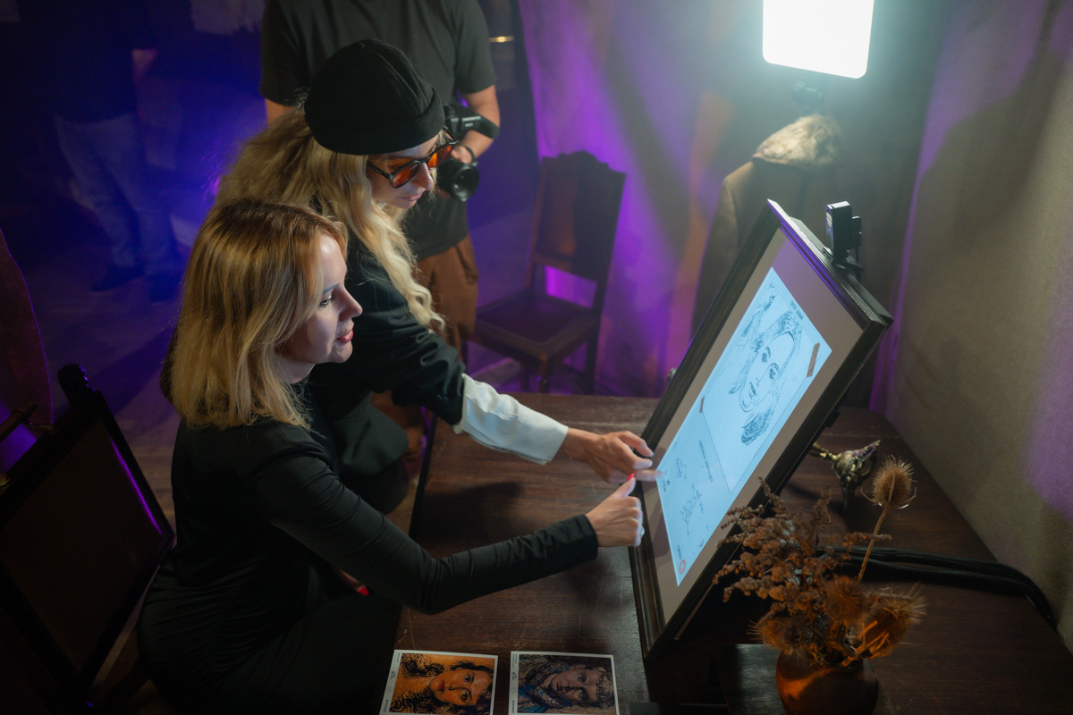 Jednym z najbardziej wyczekiwanych wydarzeń była "Firma Portretowa 2.0". Dzięki specjalnemu systemowi komputerowemu, każdy mógł usiąść przed kamerą i otrzymać własny portret w stylu Witkacego - przetworzony przez sztuczną inteligencję. Kolejka chętnych ustawiła się natychmiast, a wygenerowane obrazy stawały się czymś więcej niż pamiątką: były doświadczeniem, w którym uczestniczył sam widz.