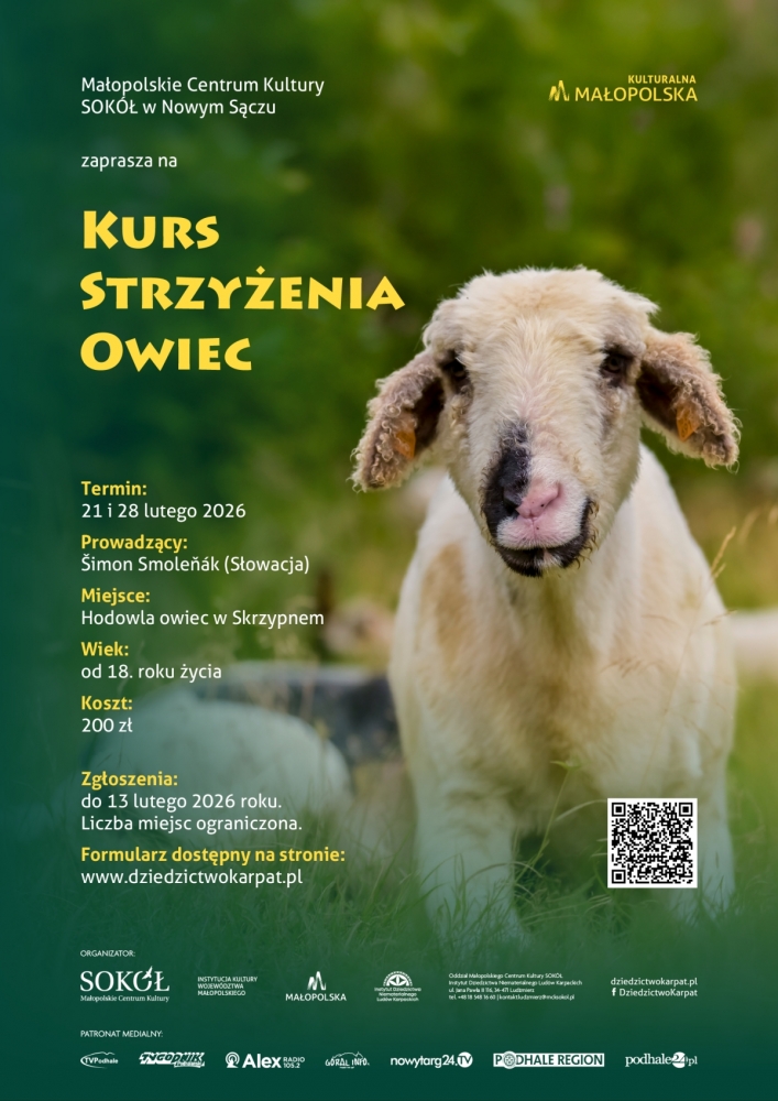 Wychodząc naprzeciw potrzebom środowiska hodowców, Instytut Dziedzictwa Niematerialnego Ludów Karpackich w Ludźmierzu - oddział MCK SOKÓŁ, organizuje Kurs Strzyżenia Owiec w Skrzypnem. Kurs poprowadzi jeden z najlepszych fachowców w tej dziedzinie - Šimon Smoleňák ze Słowacji.