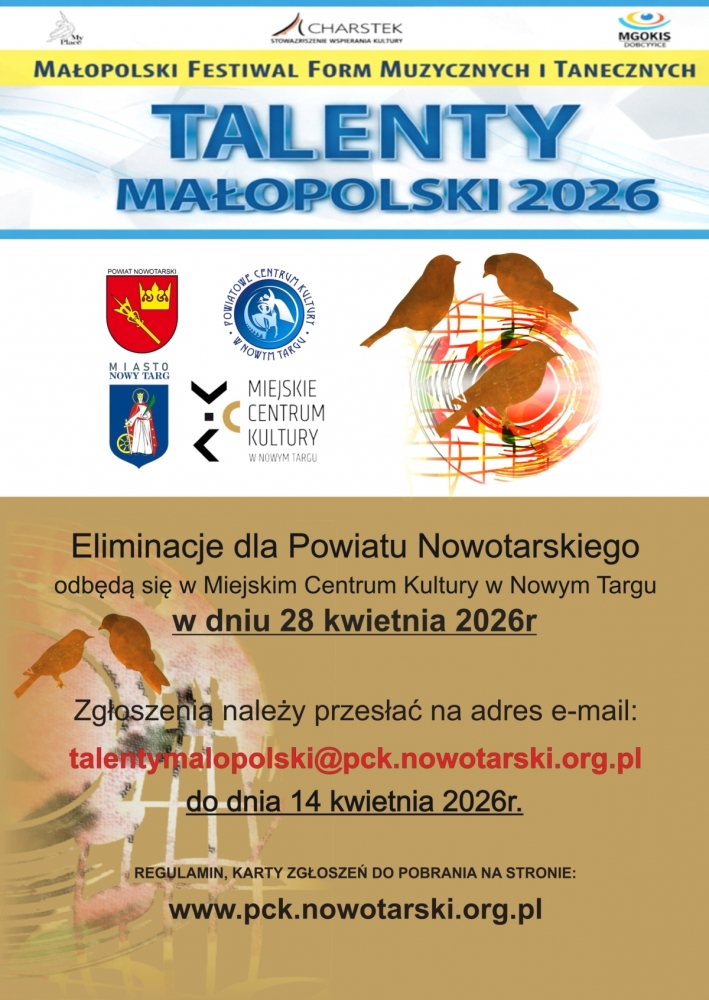 Regulamin: https://pck.nowotarski.org.pl/kultura/3370/malopolski-festiwal-form-muzycznych-i-tanecznych-talenty-malopolski