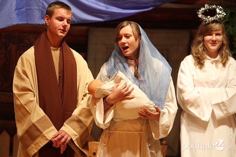 W Jasełkach, wyreżyserowanych przez księży Mariusza Dziubę i Józefa Urbańczyka z parafii Najświętszego Serca Pana Jezusa, jako aktorzy, śpiewacy i muzykanci wystąpili uczniowie obu szkół, wspomagani przez Kręgi Rodzinne działające przy parafii NSPJ. Sala Miejskiego Ośrodka Kultury, który wraz z Urzędem Miasta i Starostwem Powiatowym był współorganizatorem przedsięwzięcia, była w niedzielę pełna. Nie zabrakło wspólnego kolędowania, świątecznej scenografii i dobrego, góralsko-krakowskiego humoru.