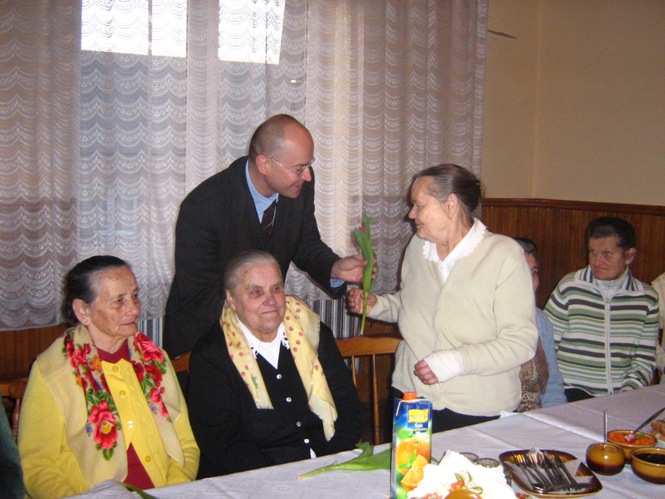 Po przywitaniu przez przewodniczącą KGW Julię Wojtaszek, wójt złożył życzenia i wspólnie ze swoim zastępcą wręczył paniom kwiaty.