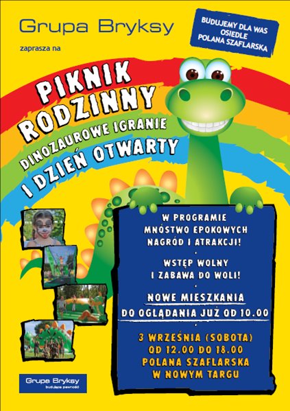 W programie są między innymi epokowe zabawy i konkursy z nagrodami dla całych rodzin. Na miejscu będzie dmuchany plac zabaw, zjeżdżalnia, mini bungee, odbędzie się polowanie na dinozaura, rodeo i zaprezentowane zostaną przygotowane specjalnie dla dzieci animacje. Piknik rozpocznie się o godz. 12 i potrwa do godz. 18. Wstęp wolny.