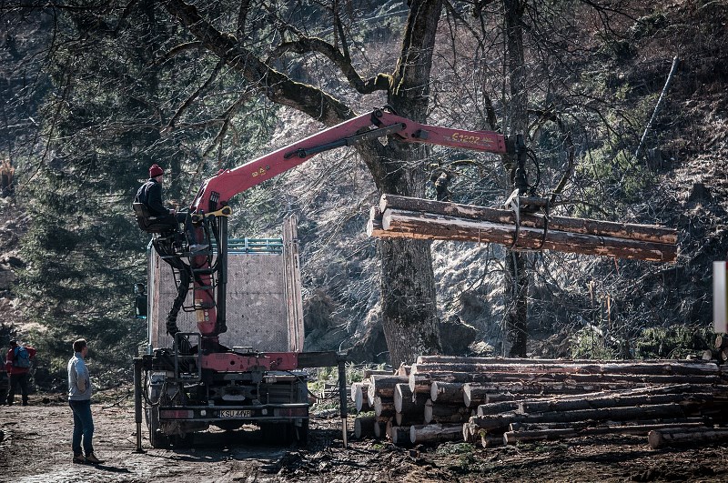 Do Doliny Kościeliskiej wjechał ciężki sprzęt. Nieliczni spacerujący muszą ustępować miejsca ciężarówkom i traktorom zwożącym połamane przez wiatr drzewa. Cała Dolina wygląda jak wielki plac budowy. Przy pięknej, słonecznej pogodzie w oczy rzuca się ogrom zniszczeń wyrządzonych przez świąteczny halny. Usuwanie wiatrołomów i liczenie strat potrwa zapewne jeszcze wiele miesięcy.