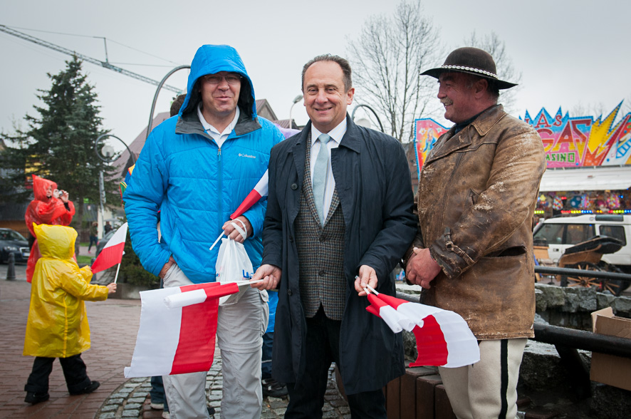 Z okazji Dnia Flagi Rzeczypospolitej Polskiej, zakopiański poseł Andrzej Gut Mostowy, rozdał na Krupówkach 1500 biało-czerwonych chorągiewek i flag.