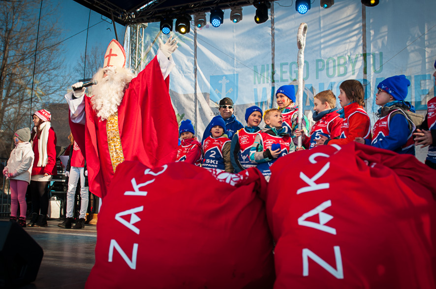 Przyjechali strażacy z wysięgnikiem i wozem bojowym. Pojawiły się szkoły narciarskie. Całą imprezę prowadzą artyści cyrkowi. W południe wystartował Bieg Mikołajkowy. O jego wynikach poinformujemy wkrótce.