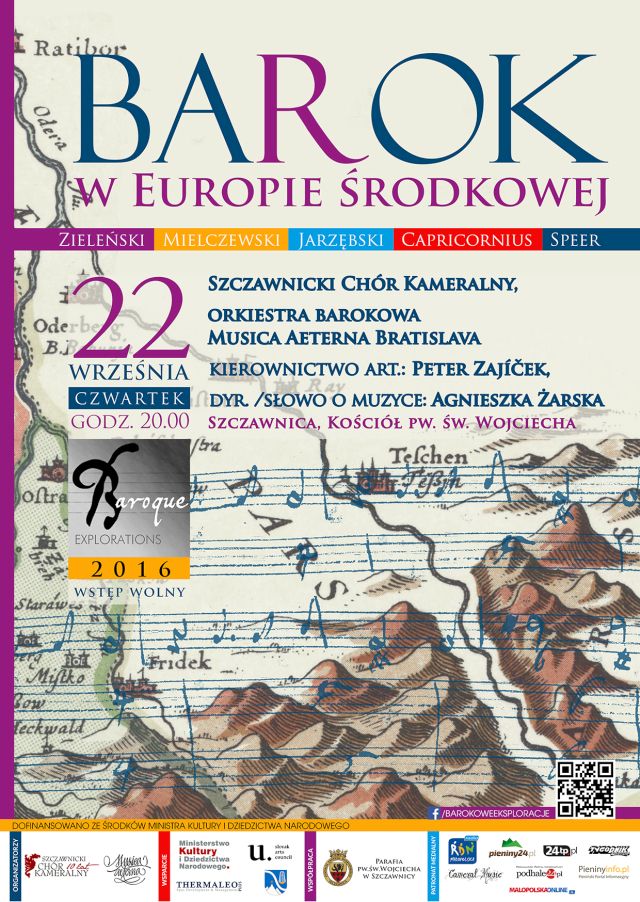 Szczawnicki Chór Kameralny razem ze słowacką orkiestrą barokową Musica Aeterna Bratislava zaprezentują pod dyrekcją Agnieszki Żarskiej dzieła polskich mistrzów: Mikołaja Zieleńskiego, Adama Jarzębskiego, Marcina Mielczewskiego, a także rzadko w Polsce wykonywaną muzykę pochodzącego z czeskich Žercic Samuela Capricorniusa oraz urodzonego we Wrocławiu (ówczesnym Breslau) Georga Daniela Speera. Utwory instrumentalne poprowadzi od skrzypiec kierownik artystyczny Musica Aeterna - Peter Zajicek.