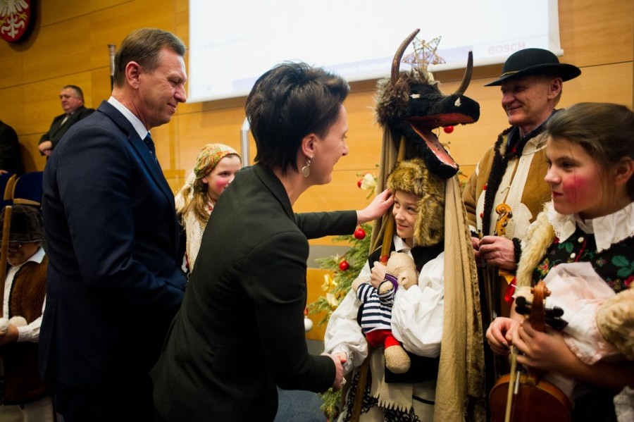 Kolędnicy z Orawy śpiewem i barwnymi przebraniami przypomnieli na początku sesji małopolskie tradycje bożonarodzeniowe, za co zostali nagrodzeni brawami i drobnymi upominkami.