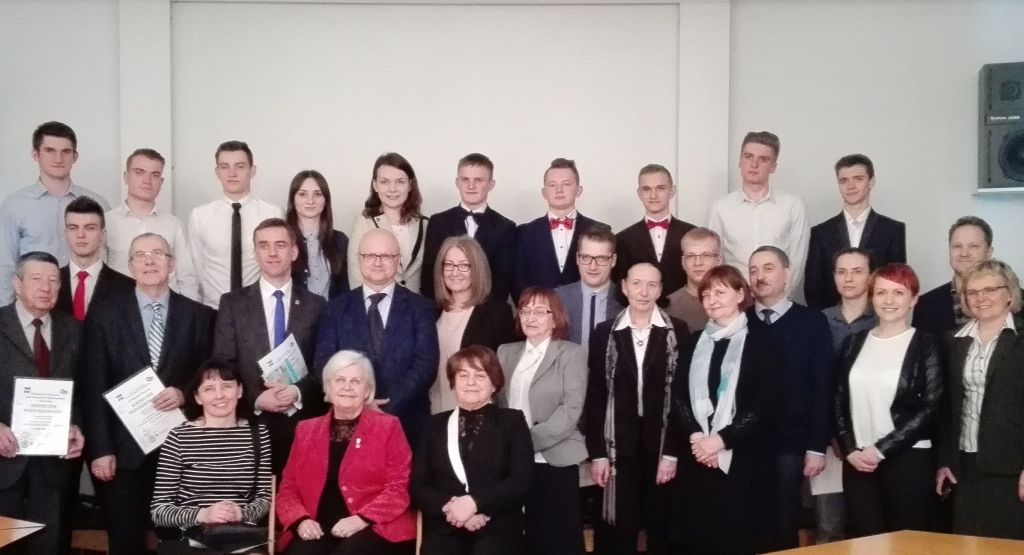 Na zdjęciu - nagrodzeni olimpijczycy z opiekunami i przedstawicielami Politechniki Krakowskiej