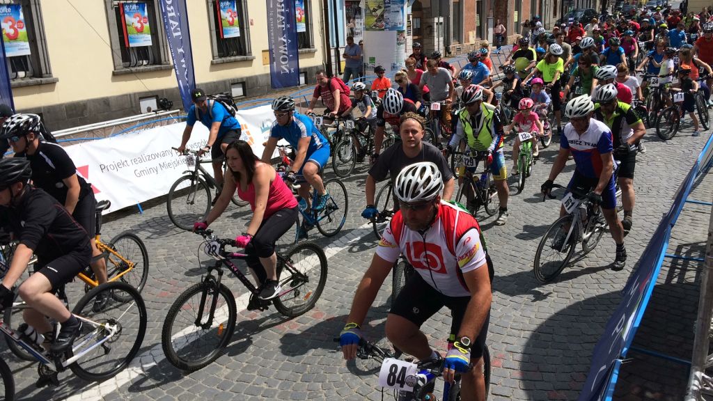 Na płycie Rynku zakończono etap 55. Małopolskiego Wyścigu Górskiego. Po dekoracji najlepszych zawodników - rozpoczął się Rodzinny Rajd Rowerowy.