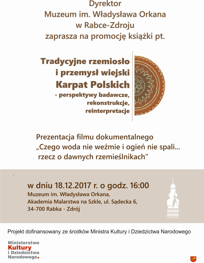 W trakcie promocji odbędzie się również prezentacja filmu dokumentalnego pt: "Czego woda nie weźmie i ogień nie spali ...- rzecz o dawnych rzemieślnikach" zrealizowanego przez nasze Muzeum.