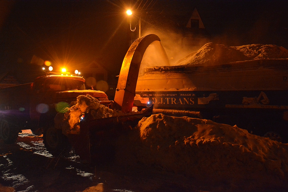 Minionej nocy na zlecenie Urzędu Miasta w Nowym Targu śnieg zabierany był m.in. z ulicy Jana Pawła II.
